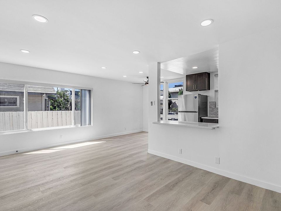 Located in quiet contemporary residential neighborhood, carefully crafted to suit ultimate comfort, spacious airy modern inspired oasis of a home with lots of natural light, Newly entirely remodeled large 1 Bedroom + 1 Bathroom, architectural masterpiece. Home features; modern open kitchen layout with high end custom finishes including new stainless steel appliances, stainless steel fridge, stainless steel dishwasher, stainless steel stove/oven, Air-Conditioning & Heat, Quartz stone countertops, large open dining area and living room area, new modern hardwood flooring, newly renovated bathroom, lots of closet/pantry/cabinet space throughout unit, and much more. Prime location, close to many restaurants, entertainment, FWY, and more. Quiet building.