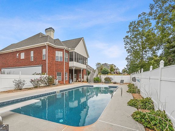 This four-sided brick estate boasts 4 bedrooms, 4.5 bathrooms, an attached hangar or workshop, and a detached 50' x 50' hangar with 14' x 42' door, all located midfield on a lighted 3,000' sod runway with direct access to anywhere you want to go. Inside, hardwoods and an open-concept living/dining/kitchen create a seamless space for entertaining and daily living, while the chef's kitchen features an island and pantry. The main-level owner's suite offers a spa bath with dual vanities, walk-in shower, jetted tub, private access to the screened porch plus two additional bedrooms on the same level. Upstairs, enjoy a spacious teen suite, versatile bonus room, and a studio ideal for play, media, exercise, or hobbies. The terrace level adds finished living space including a den, second kitchen, sleep room with closet, and full bath, plus unfinished space accessible from both the interior and through the hangar door-perfect for aviation projects or additional storage. Outdoor living shines with a screened porch, fenced yard, garden, and 18' x 36' in-ground pool with new liner. Recent updates include a new roof and new HVAC system, ensuring comfort year-round. The gated community of Lyons Landing offers tennis courts, pool, and lake amenities, delivering the ultimate blend of aviation convenience, luxury, and lifestyle.