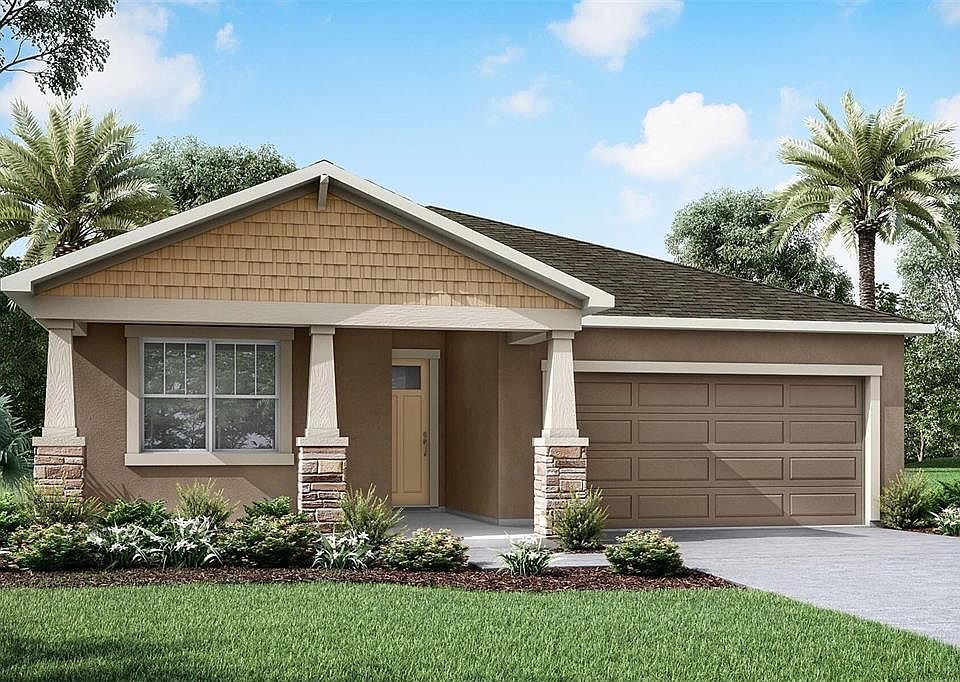 One or more photo(s) has been virtually staged. This corner-lot Talbot floorplan offers a thoughtfully designed layout perfect for everyday living. The welcoming front porch and foyer lead to two secondary bedrooms with a full bath, while a versatile flex room adds space for a home office or den. The open Great Room, dining area, and kitchen feature a breakfast bar and large corner pantry, creating an ideal space for entertaining. A spacious covered lanai extends your living outdoors for dining or relaxing. The private primary suite includes a dual-sink bath and a large walk-in closet, offering comfort and convenience. Enjoy a community rich in resort-style amenities, including a pool, clubhouse, firepit, event lawn, playground, dog park, and fitness center—bringing leisure and recreation right to your doorstep.