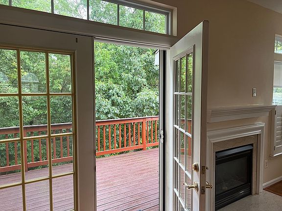 Beautiful end model garage townhome in wonderful Braemar community. Excellent location backing to woods for added privacy. Light, open floor plan, gorgeous wood flooring throughout Main level. Living Room with floor to ceiling Palladian windows & recessed lighting, Dining Room, gas fireplace and spacious Kitchen with island, pot rack, wine rack & built in desk. French doors lead to a large deck overlooking trees/woods. Upper bedroom level offers a Primary suite with double entry doors, 2 closets & an attached full bath with soaking tub and separate shower, two additional bedrooms and a full bath. The entry level has a foyer, two-story ceiling and a large Great Room with doors which open to the level backyard area. Newer front loading steam washer & dryer. Garage with extra storage.