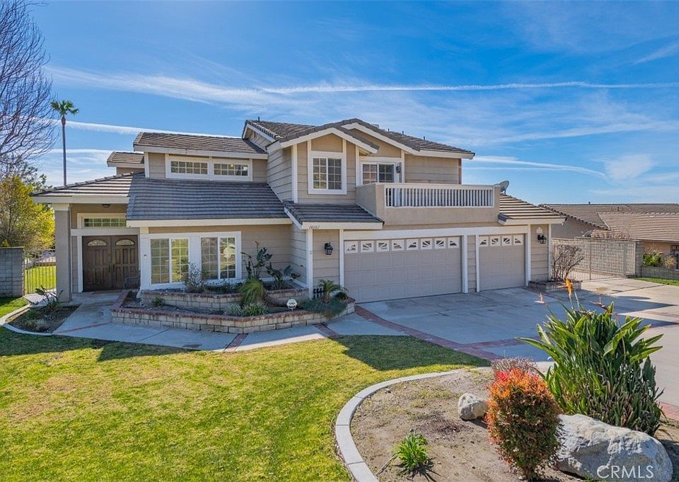 Welcome to 10161 Woodridge Dr in the City of Rancho Cucamonga! This stunning 4 bedroom, 2.5-bath home spans 2,694 square feet and sits on an expansive 26,400 Sqft lot. Featuring a spacious 3-car garage, the property is designed for both comfort and entertainment. The backyard is a true highlight, offering a custom waterfall pool, a relaxing spa surrounded by natural rocks and palm trees, and a basketball court for endless fun. The sand area provides a perfect space for lounging or for children to play, making it an ideal setting for outdoor enjoyment. With breathtaking panoramic views, the backyard is perfect for both lively gatherings or peaceful evenings. Inside, the home has been thoughtfully updated with newer cabinets, fixtures, stainless steel appliances, granite countertops, and distressed hickory laminate and porcelain tile flooring. The open layout connects the formal living room with vaulted ceilings, a formal dining room with sweeping views, and a chef’s kitchen that opens to the family room and home bar. A convenient powder room is located downstairs. Upstairs, the master suite is a serene retreat with a vaulted ceiling, a large walk-in closet, a private balcony with mountain views, and a luxurious bathroom featuring a granite shower enclosure and a separate bathtub. The hallway bathroom is finished with tumbled marble, and all three additional bedrooms offer spectacular views, one with access to an oversized balcony with a spiral staircase leading to the private backyard paradise. The property also includes a gated side yard for RV parking and an equestrian-ready area, adding versatility and extra value. This home is just moments away from shopping, dining, and major freeways. With its impressive home, beautiful backyard, and prime location, this property offers the perfect combination of luxury, functionality, and outdoor living!!