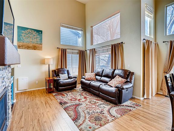 Fall in love with this energy-efficient solar home with 3 bedrooms, 4 bathrooms plus finished basement and updated bathrooms! Spacious open floor plan and bright interior complement this beautiful home featuring an inviting 2 story living room w/ceiling fan and fireplace, kitchen w/custom cabinetry, eating space, pantry, stainless appliances-new refrigerator and disposal, tile backsplash and gas stove. Updated lighting, mountain views, 2 car garage w/new door opener, security system and newer roof. Upstairs showcases a spacious loft perfect for study/den or additional living space, updated full bathroom, 2 bedrooms including a Master bedroom w/ceiling fan, walk-in closet and updated en-suite bathroom with high-end modern tile and finishes. Finished basement with newly added bathroom plus 3rd bedroom perfect for mother-in-law or guest suite. Fenced yard w/deck provides a relaxing place for entertaining or casual living. Backyard w/professionally installed low maintenance premium grade turf! Walk to area Middle and High Schools. Convenient access to shopping, dining, parks and 4 recreational centers featuring pools, fitness and tennis.