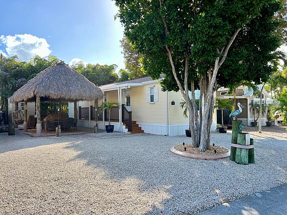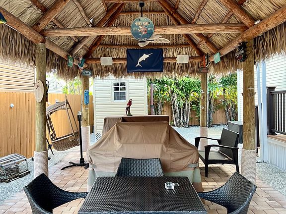 Charming, fully furnished and impeccably maintained Keys style home in the sought-after gated community of Coastal Waterways located right on Tarpon Basin. This manufactured home built 2016 features almost 800 square feet of living area and includes over $15K in Builder options and upgrades! The 3,700 square foot lot has plenty of room for your boat. Outside your home, enjoy the Keys lifestyle while lounging in your own 300 square foot tiki hut complete with fire table and gas grill. The rear of the home is lined with majestic fish tail palms providing plenty of shade and privacy. The private marina features a boat ramp, slips, hammock, ice machine. Enjoy the breathtaking sunsets from the bayside tikis. Very low monthly Association. Seller is willing to finance a portion of the sale. Grab your slice of paradise before it's gone and live the Salt Life!