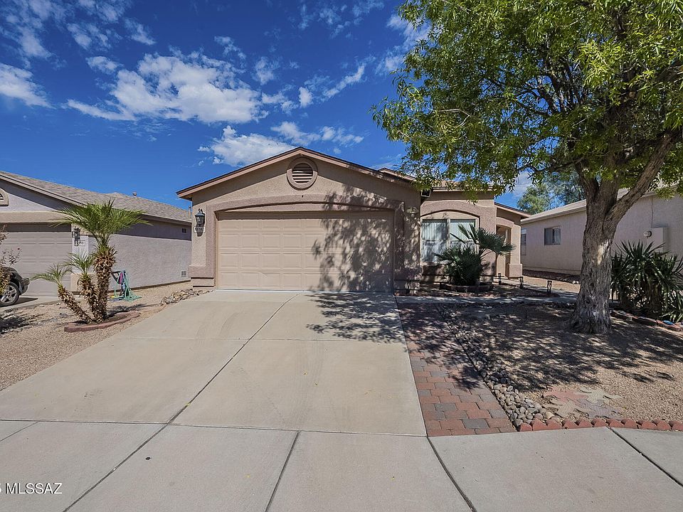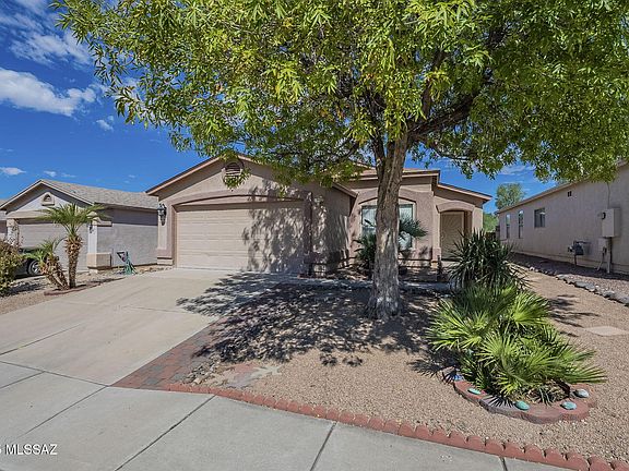 Well maintained 3 bedroom/2 bath home with split/open floor plan and many upgrades!Award winning Vail school district. Close to everything, but very quiet. Home backs to a wash for space between rear neighbors. Landscaped yard with healthy plants and fruit/moringa trees. Large closets and kitchen pantry. 2-car garage has just been freshly/professionally coated with epoxy. Washer, brand new dryer and refrigerator all stay. Ample open living space and light. Ring security bell, Feit security camera, all new lighting fixtures and fans, NEWER A/C AND WATER HEATER (2023), NEW ROOF IN 2025, professional drip irrigation, shed on new concrete pad, newer custom tile and both bathrooms are fully custom remodeled! Freshly painted and cleaned! Seating in primary walk-in shower.