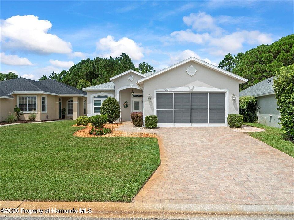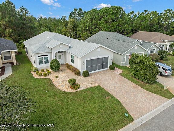 Located in Glen Lakes, this is a completely updated 1999 Addison Windward maintained home with 2 bedrooms+den+Florida Room/2 baths/2 car garage. NEW ROOF IN 2023!, NEW A/C IN 2021! NEW DOUBLE PANE WINDOWS AND NEW ENTRY DOOR. Freshly painted interior and exterior in 2023. New garage door screen and service door, new luxury vinyl flooring throughout, all new electric receptacles and switches, new Norman Perfect Sheer window coverings (verticals and shades). New water heater and new water softener, Located on a peaceful Preserve lot, this home has paver brick driveway and walk, Curb-a-Lawn with stone in the landscape beds. The kitchen is fully remodeled with new wood cabinets, new granite counters, new stainless steel appliances, new sink and faucet, sunny breakfast nook, closet pantry. Open concept great room floor plan, high 15 foot vaulted and high flat 10 foot ceilings. The spacious den has built-ins and beautiful molding, pocket doors for entry can easily be converted to a 3rd bedroom. The primary suite has a tray ceiling, walk-in and built-in closets. The bath has separate tub and shower, dual sinks, granite counters. The second bath has granite counters and new faucet. This light and airy home has entry to the L-shaped Florida Room via dining room and living room sliders. The Florida Room is glassed in for year-round comfort with new shade film on windows. All appliances including washer/dryer convey. This home shows pride of ownership and is immaculate and truly move-in ready. HOA FEES INCLUDE CABLE AND HIGH SPEED INTERNET AND PRIVATE MAINTAINED STREETS, 24 HOUR SECURITY WITH MANNED GATE. Maintenance for this home includes exterior water, grass cutting, sprinkler repair, fertilization of lawn, escrow for roof cleaning and escrow for exterior painting. 1778 living sq. ft., 2514 total sq. ft. Glen Lakes is a wonderful gated and manned golf course community and surrounded by the 85,000 acre Chassahowitzka National Wildlife Refuge. The required social membership gives access to the clubhouse, restaurant, bar, Jr. Olympic size heated pool/spa, fitness center, clay tennis courts, pickleball courts and a vast array of social clubs. golf memberships also available.