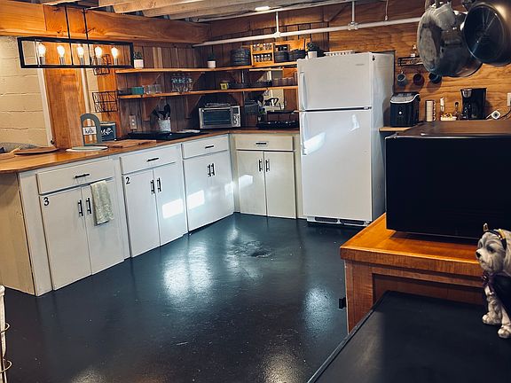 Fully equipped kitchenette with full-size refrigerator, stovetop, and microwave