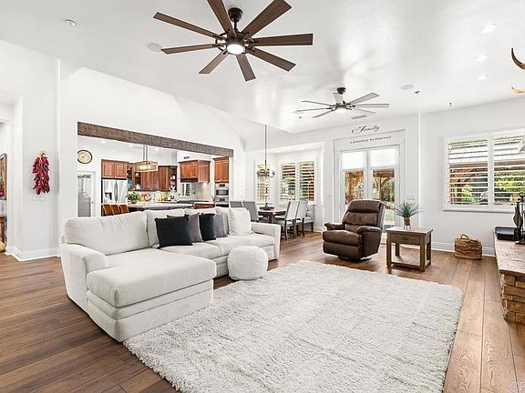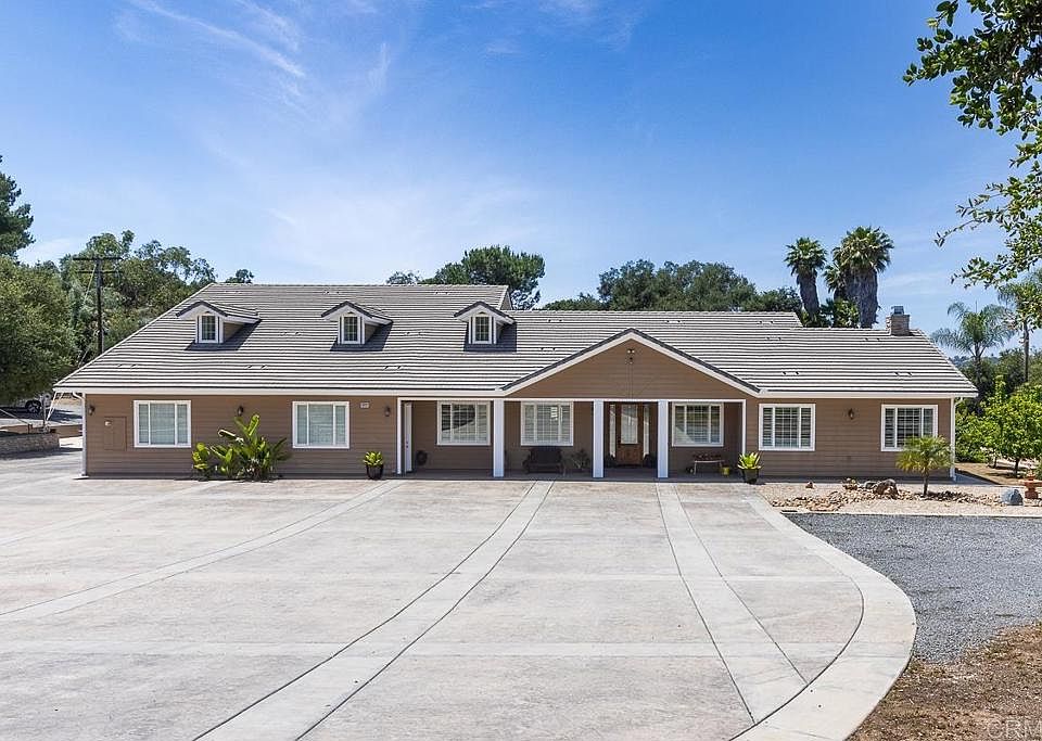 This custom home is one of kind and rarely available you need to view to appreciate the upgrades with lots of opportunity on 1.63 acre on usable lot for ADU or guest house low maint. landscaping this custom home offers privacy and fully fenced with one of a kind garage. Welcome to your dream home at Rancho Roble, a private gated custom estate nestled in the serene community of Escondido. Need space for cars, construction vehicles, recreational vehicles or simply need space and privacy look no further this home has you covered this dream 6+ garage can accommodate a car lift, RV or Boat with ease. This impeccably maintained residence with large level lot offering privacy, luxury, and room to expand As you arrive, a custom iron gate opens to a long private driveway that can accommodate more than 12+ vehicles with ease beautifully low landscaped grounds. The custom front door, crafted from alder wood and glass, leads into a thoughtfully Single-level living with 4 bedrooms + upstairs bonus room 5th bedroom/guest suite with private half bath. As you open the doors your greeted with soaring ceilings with custom Faux wood beams and views to your backyard. The 5th bedroom upstairs is ideal for guest, multi-generational living or in-law quarters Gourmet kitchen with quartzite countertops, Viking range, stainless steel appliances, upgraded fixtures, and a spacious island perfect for entertaining New custom quartzite stone enclosure on all bathrooms and vanities, Large baseboards, newer flooring, and fresh interior paint Dual walk-in closets in the primary suite and dual-zone HVAC systems Ample attic storage and built-in fire safety features including cement siding, enclosed fascia, indoor sprinklers, and exterior high pressure hose. Garage + RV/Boat Space: Custom 6 + car garage with center BAY garage ideal for car lift, RV or Boat. This dream garage can easily accommodate 6–7 vehicles lots of lighting for collectors or hobbyists in addition to large garage home has a dedicated RV parking space Outdoor Living: Entertainer’s backyard with expansive outdoor kitchen, built-in BBQ, fire pit, and multiple seating areas Fruit trees, vegetable garden, and scenic views of Escondido’s rolling hills This property offers the best of country living with high-end finishes and turnkey condition — a rare opportunity to own a fully upgraded home with space, privacy, and thoughtful design.