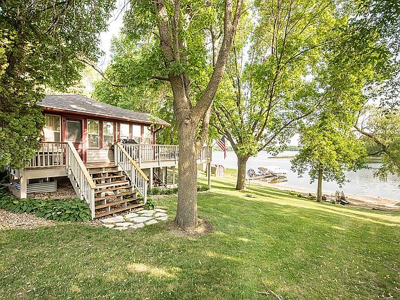 The property is located in the Alexandria area on the Northern shores of Lobster Lake (1300 acres with excellent water clarity). It has a gradual slope with a Southern exposure to 100 ft of sandy shoreline. There is a boat landing access on-site along with a fire pit overlooking the bay. It is a 3 bedroom, 2 bath walkout rambler with an open living area on the main level w/a lakeside deck that wraps around. The lower level includes 2 bedrooms and a bath and an additional living room with lakeviews. The walkout has a screened in porch under the deck that includes a waterproof ceiling. For larger groups of guests there is a ample accommodations above the garage. The garage (34’ x 28’) offers enough storage for boats, pontoon, atvs, trailers, canoe, and more. Just off interstate 94 there are paved roads to the property with a private sewer, well, and fiber optic internet. Along the lakeside there is an 8’x10’ storage shed, a 48’ aluminum, L-shaped, roll-in dock with cedar panels, and a lake water pump. This year's property taxes are $2608.00 The asking price is $515,000 Also available for sale: a pontoon, 2 waverunners w/trailers and lifts (pontoon lift has a motorized lift), an atv, and more.