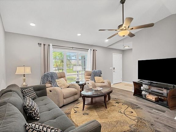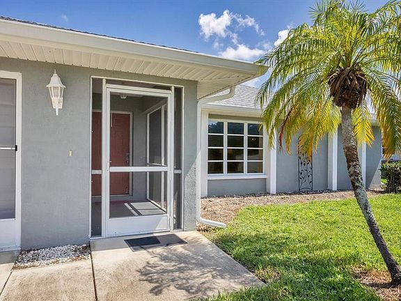 Less than 7 miles from the Beach! Welcome to your Florida retreat, located in a desirable X Flood Zone, no flood insurance required! This beautifully maintained home offers a generous layout and a long list of updates, making it move-in ready and perfect for full-time living, seasonal stays, or rental income. The HOME FEATURES: 2 bedrooms and 2 full bathrooms, living room + family room + dining room + dinette, an expansive interior laundry room with utility sink & extra shelving, 10' x 21' Florida Room (not included in A/C square footage), 2-car garage + 6' x 8' backyard shed, fully fenced backyard with an extended concrete patio and plenty of closet space throughout. SELLER UPDATES: Luxury vinyl plank flooring in bedrooms and main living areas, vanity in guest bath, updated light fixtures and kitchen lighting, screens in Florida room, A/C unit, renovated primary bathroom, stainless steel refrigerator, washer & dryer, water heater, roof & gutters, interior and exterior paint, backyard fence and patio addition. The primary suite boasts a massive walk-in closet, and you'll find linen closets in both bathrooms, two closets in the foyer, a pantry in the kitchen, and even more storage in the laundry room. With three distinct living areas, living room, family room, and enclosed Florida room, there's plenty of space to entertain or unwind. Located in a quiet, friendly neighborhood, this home is being sold fully furnished, just bring your toothbrush and start enjoying the Florida lifestyle! Don't wait, schedule your showing today and make this coastal gem yours! County records show the home as 3 bedroom.