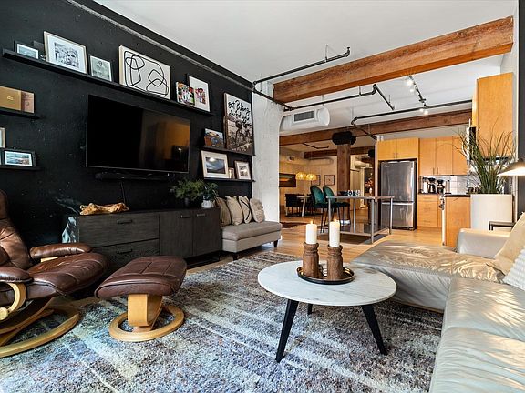 Welcome to your dream condo in this prime downtown location! This stunning loft features a massive foyer with a large walk-in closet, new hand-scraped plank flooring & new windows (2025) and the coolest kitchen pantry created from an old elevator shaft. The living space features a bright living room and enclosed office/second bedroom, a cocktail nook & sleek lounge area! The luxurious primary suite with a fir wood partition wall with uplighting, river rock, and exposed brick. Enjoy a spa-like primary bath, smart home features, in a pet-friendly building. With gated parking, a shared rooftop patio, around the corner from Rogers place and a ton of local amenities, this massive corner unit offers the perfect urban retreat!