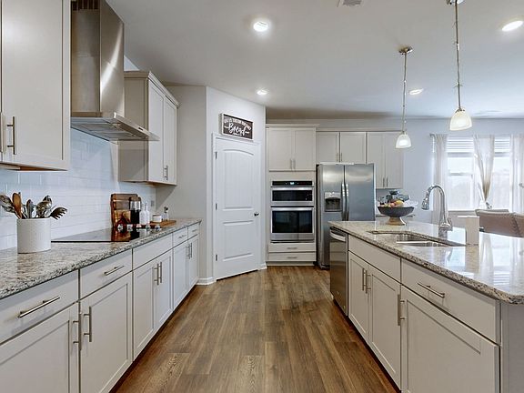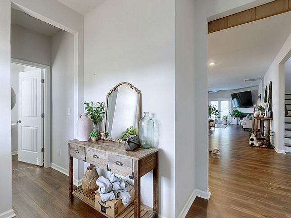 Backing to peaceful woodsMain-level primary suiteCovered porchSpa-like bathBright open floor planUpstairs oversized bedroomsNatural light