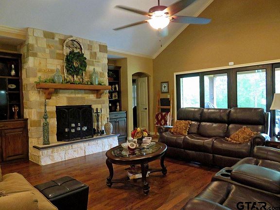 CUSTOM BUILT DREAM HOME! Magnificent 4 bed, 3.5 ba home on 20 plus secluded wooded acres! Stone Accents, Cedar Shutters & Cedar Beams attribute to charm of this exceptional home! Open-Living concept boasts Red Oak Hardwood Floors, High Ceilings, Arched Openings, Crown Molding, Gas Log Stone Fireplace, & Custom Built-ins. Fabulous Kitchen features Granite, Breakfast Bar, Hammered Copper Sink, Stone Alcove, Gas Stove, Red Oak Cabinets & Huge Walk-in Pantry! Custom Stone Accent Wall highlights dining room. Master has huge walk-in dressing closet, granite, over-sized walk-in tile shower & garden tub. Fully furnished Media Room, Office, Spacious Utility Room & Walk-in Attic w/tons of storage completes this beautiful dream home!