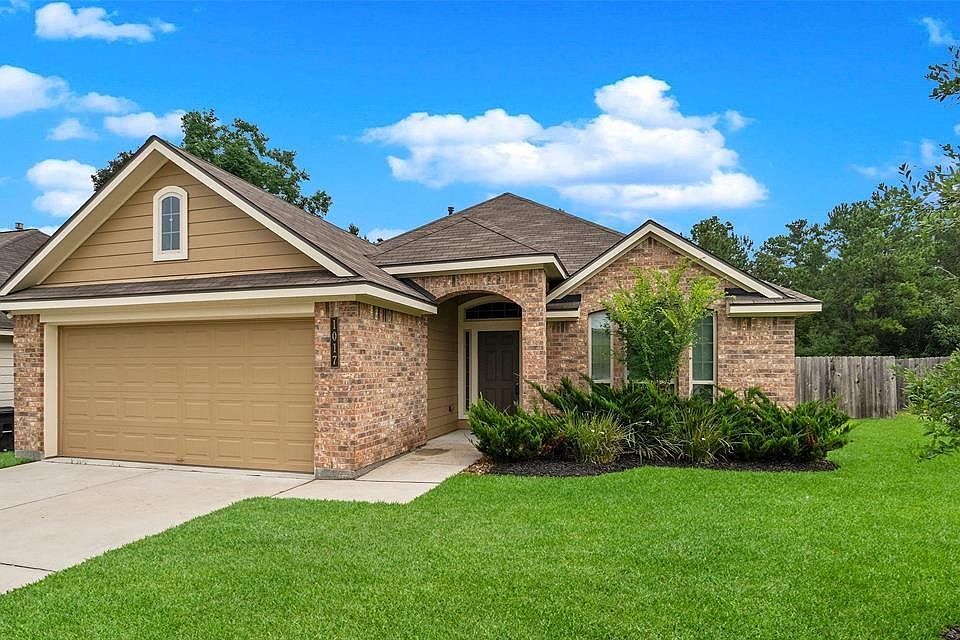 Available for immediate move in. Like new upgraded single-story home features designer dark walnut kitchen cabinets with elegant granite counter tops, expansive breakfast bar, formal dining room, study/office nook and generous size bedrooms. The spacious Master suite includes an En-suite bath with granite counters, double sinks, and an oversized soaker tub. The back patio is a great space to unwind with a glass of wine after a long day and enjoy your low Maintance, fenced in back yard. What an incredible location within minutes to I-45, shopping, downtown Conroe, Lake Conroe and The Woodlands Mall. Schedule your tour today!