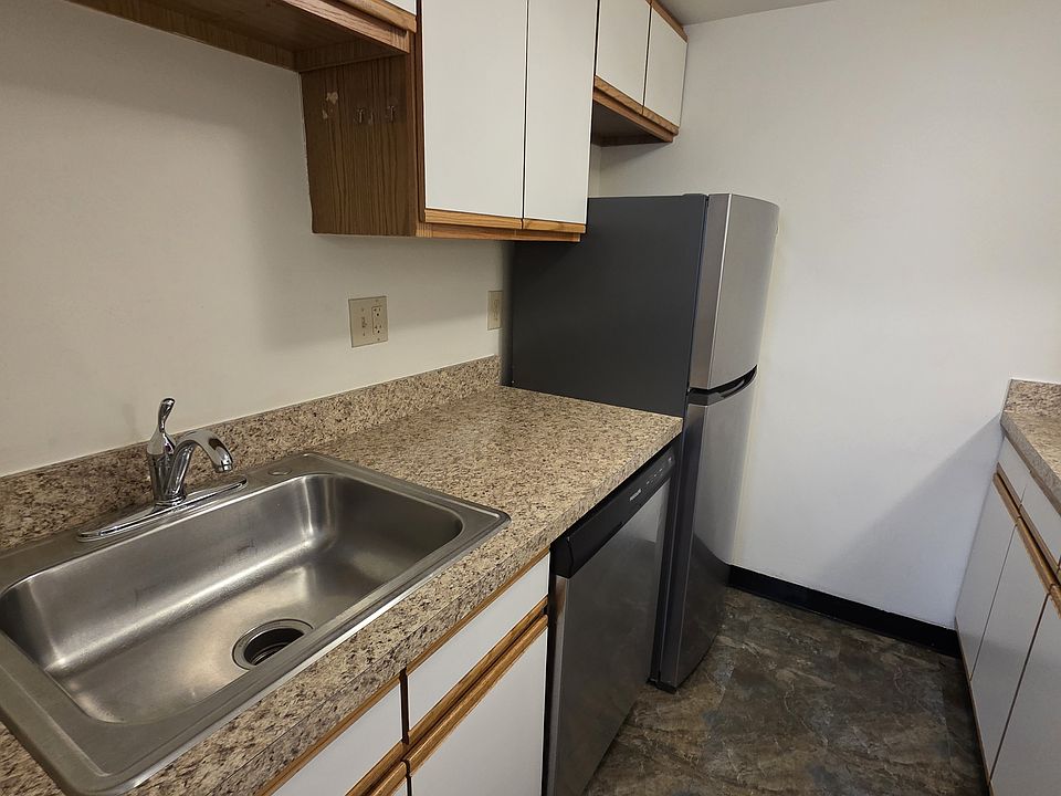 Recently updated and well-maintained one-bedroom apartment in a central, easily accessible location. This modern home features a thoughtfully designed layout with brand new hardwood floors in both the hallway and bedroom. The fully equipped kitchen includes new countertops and stainless steel appliances. The bathroom offers a full-size tub, brand new vanity, modern mirror and lighting. The comfortable living space centers around a working fireplace and recessed lighting, while energy-efficient windows fill the home with natural light, creating an inviting setting perfect for both relaxation and productivity.