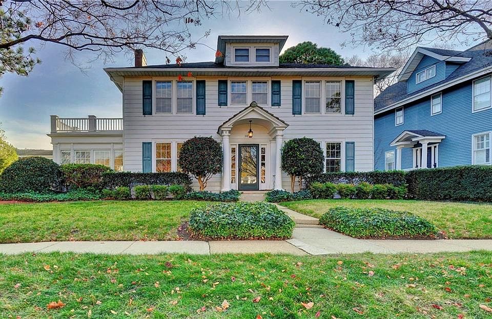 Beautifully constructed 1923 center-hall Colonial sits on Larchmont's coveted Triangle Park, with a lovely view of the Lafayette River. Gracious foyer w/marble floor seamlessly opens on either side to living and dining spaces, offering a circular flow, perfect for easy entertaining and everyday living. To the left sits a spacious living rm, anchored by fplace, sunporch w/flr to ceiling windows, and family rm, while to the right, a large, renovated kitchen is flanked by formal dining rm and bkfst rm. Double stairs lead to 2nd fl. w/a light-filled primary w/double closets and en-suite bathrm, along w/2 additional bdrms, each w/built-ins, an office nook, hall bthrm, and utility rm. Stairs to walk-in attic. Landscaped yard and two-car, det. garage!
