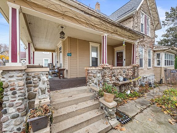 Wow! Great opportunity to own this beautiful vintage home in the very popular North East end of Elgin! Just a block to the bike path, Fox River and very quick access to I-90! Awesome wrap around front porch great for summer nights with cobblestone accent on exterior! Updated kitchen with custom 42" maple cabinetry, planning desk, tile backsplash! Separate formal dining area with custom built ins! Cozy living room with picture window and crown! 1st floor den/possible 4th bedroom with double French doors and direct access to full remodeled bath with walk in shower and oversized vanity! Back enclosed porch with wall of windows and built in bench seating great for unloading before entering the home! Large master bedroom! Gracious size secondary bedrooms and 3rd bedroom has a walk in flex play/craft room overlooking the backyard! Updated 2nd floor hall bathroom! Full unfinished basement great for storage! Awesome deep fenced lot! Oversized 2 1/2 finished garage! Separate brick patio area! Warmth and character through out! Quick access to downtown and train! Make this your dream home!