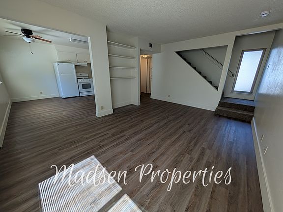 Townhome style apartment; 2 bedrooms and one bathroom upstairs, and one bathroom downstairs.