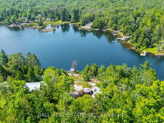 Welcome to your peaceful escape on sought-after Davis Lake! This cozy 2-bedroom log cabin is perched on a stunning rock outcropping with postcard-worthy views of the lake. Tucked away on a private dead-end road with only five other cottages, its the perfect getaway for nature lovers and outdoor enthusiasts. Inside, you'll find a recently updated 3-piece bathroom, a refreshed galley-style kitchen, and a new breaker electrical panel for peace of mind. The rustic charm of the original build is preserved while offering practical updates like newer windows and a WETT-certified wood stove to keep you warm and cozy year-round. Step outside to enjoy a screened-in gazebo, two large storage sheds (one with a workshop), and even an outdoor privy. Owners on this quiet road enjoy shared access to over 700 acres of pristine conservation land with scenic trails an incredible bonus provided through the Davis Lake Cottage Association and the MNR. There's also lake access with a small dock just across the road, and a public boat launch just minutes away. Davis Lake is known for its excellent swimming, boating, and fishing, and this special property offers a rare opportunity to own a piece of classic cottage country. Most contents included perfect for someone looking to get into the cottage market!