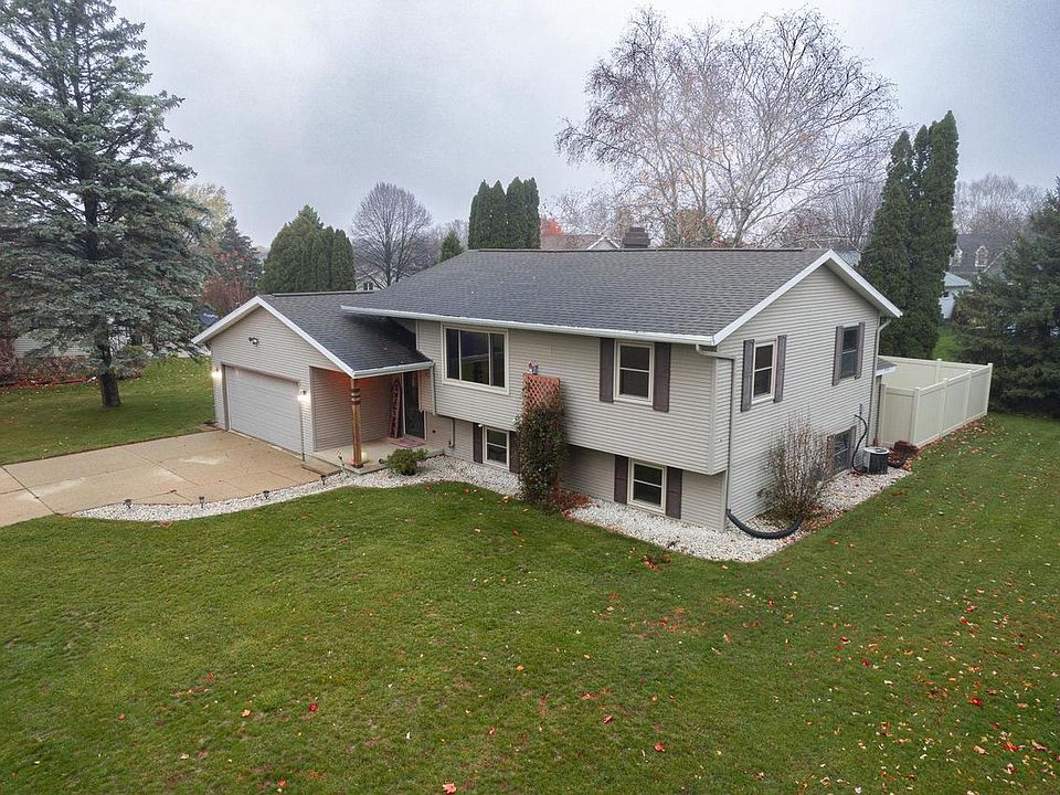 If You would Love a Large, Private Fenced in Back Yard with Both a Patio & Deck Built In, This is a Must See Property. Raised ranch layout with mostly finished basement. Totally Remodeled Kitchen with New: Granite counter tops, Cabinets, Breakfast Bar, Flooring, Sink, Backsplash, & Stainless Steel Appliance package included. Breakfast bar opens to dining area, pantry, living room, & outside deck. Luxury Vinyl Plank Flooring installed on both levels in kitchen, den, rec room & hallways. Lighting Upgrades. Choice of main or lower levels for primary bedroom location. Basement door walks out to yard in addition to deck stairs or solid fence gates. Garden Shed included. Located just on the east edge of Beaver Dam, not far from schools & Hwy 151. Truly move in ready! Call Now!