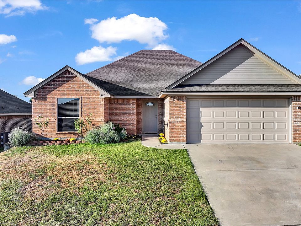 Move-in ready home in the desirable Town Creek Development in the heart of Weatherford! This 3-bedroom, 2-bath home features a split bedroom floor plan and an attached 2-car garage. The spacious living room sits at the center of the home and overlooks the large fenced backyard. The kitchen offers granite countertops, a breakfast area with a bay window, and plenty of natural light. Recent updates include fresh paint, a BRAND-NEW ROOF, and new carpet throughout. Additional highlights include a sprinkler system and an unbeatable location close to shopping, schools, parks, and restaurants.