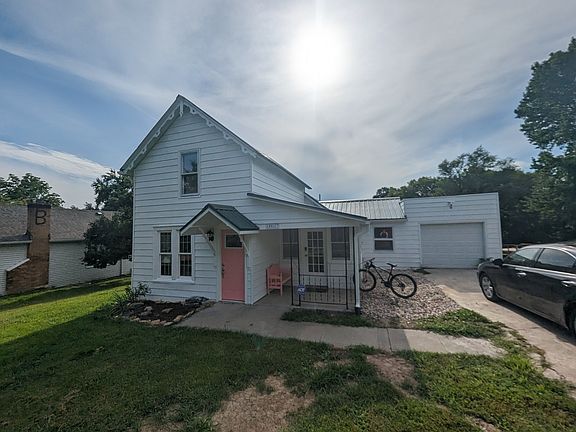 Inside, natural light filters through large, well-placed windows, illuminating rooms that feel both spacious and snug. Original wooden accents add a nostalgic touch, complemented by polished hardwood floors that echo with whispers of history. Each room invites exploration, from the quaint kitchen with its country flair to the cozy living area, ideal for family gatherings or peaceful solitude. The backyard, a little oasis of greenery, offers a place for quiet reflection, starry evenings, or small gatherings under the open Kansas sky.