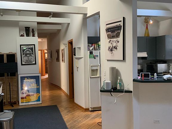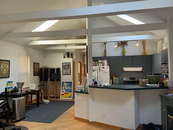Fantastic location in East Village on quiet residential street! Steps to Division Street restaurants, bars and shops as well as walk to transportation. Top floor unit in two unit building. Private rooftop deck, shared fenced yard, one garage parking spot included, in-unit washer/dryer, vaulted ceilings, sky lights, stainless appliances, dishwasher, large closets. Pet friendly. Updates in progress - entire unit will be freshly painted, newly refinished hardwood floors, new countertops and stainless appliances. Owner pays for water. Tenant responsible for gas and electric.