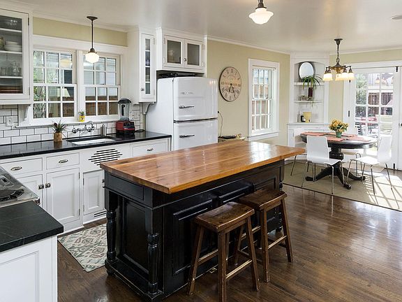 Charming Craftsman Bungalow in the heart of Bend's Westside. Step back into a simpler time, where you can enjoy warm summer evenings sitting on the covered front porch watching the world go by & barbecues in the fenced backyard. Interior features the classic design, craftsmanship & unique architectural details the Craftsman era was known for. Characterized by simplicity & clean lines, w/ elegant front living room/dining area, cozy family room w/ fireplace, hardwood floors, wood wrapped windows, built-in bookcase & patterned window panes; 30's style kitchen w/ modern appliances, subway tile, multi-pane window over the kitchen sink, glass fronted cabinets, butcher block island/breakfast bar & sunlit breakfast nook w/ double French doors opening to fenced backyard living area. Delightful owner's suite featuring beadboard paneled bath, dual pedestal sinks & freestanding soaking tub, Jr. suite, guest room/office & spacious loft, as well as an additional bonus/guest area above the garage.
