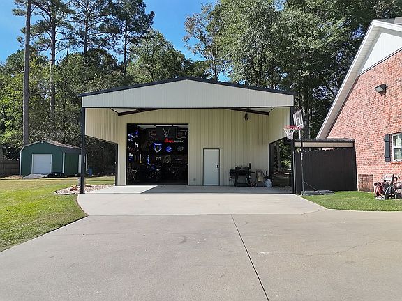 30x30 insulated shop with central heat & air and a half bath, plus a 15’ overhang for extra covered parking