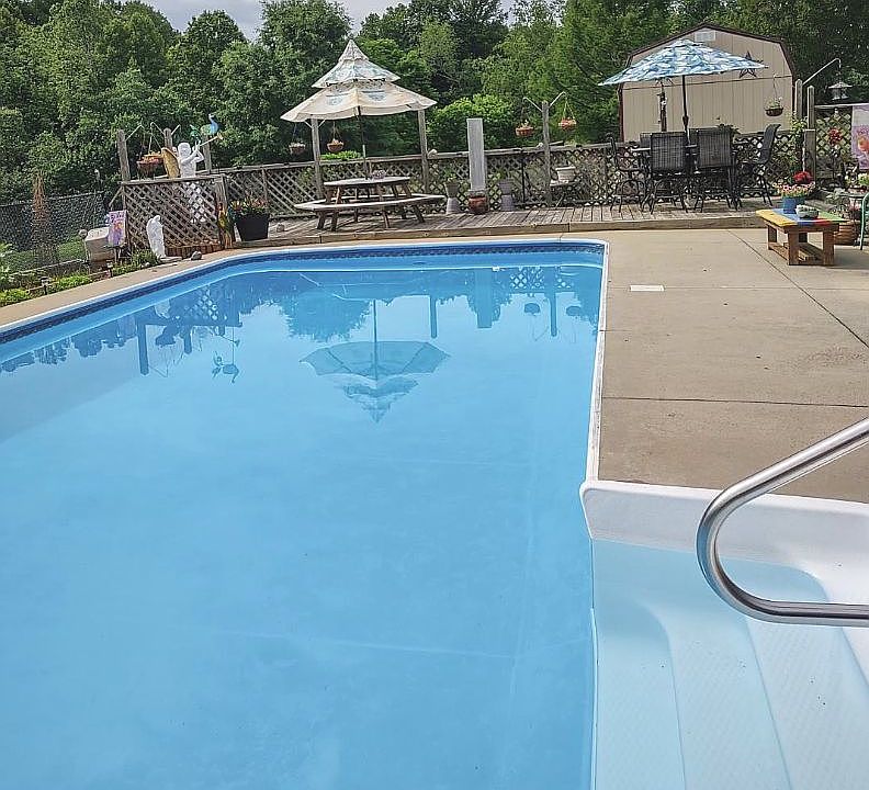 Set back from the cul-de-sac with a very private pool area with room for a hot tub if desired. Friendly neighbors with a nice hillside view from the living room and kitchen. Lots of wildlife traveling thru. Fenced in pool area from the walkout basement.