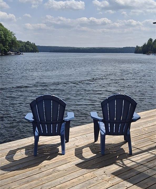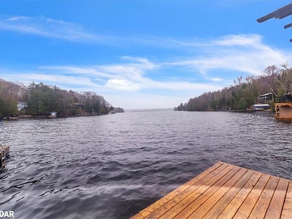 Stunning Lakefront Viceroy Bungalow on Haliburtons Premier 5-Lake Chain - Welcome to this breathtaking 3-bedroom, 2-bathroom Viceroy bungalow offering 2,147 sq ft of beautifully renovated living space, perfectly positioned on a premium, unobstructed 150 ft lakefront lot. This home blends elegant design with the ultimate waterfront lifestyle in one of Haliburtons most coveted locations. Step inside and be captivated by the open-concept layout featuring soaring vaulted ceilings and expansive windows that frame panoramic lake views from all principal rooms. The heart of the home is a gourmet kitchen boasting quartz countertops, a large island, and a seamless flow into the formal dining room, which walks out to a lakeside deck perfect for entertaining or enjoying serene morning coffee. The Huge formal Livingroom overlooks the lake and is off the dining room - great for large family gatherings. Efficient Napoleon propane stove heats the entire house. The spacious great room is anchored by a Wood Burning Stove fireplace, creating a cozy, stylish space to relax, with another walkout to your outdoor oasis. The designer main bathroom off Master and main-floor laundry and 2nd full bath off 2nd foyer entrance, add both comfort and convenience. Outside, the professionally landscaped grounds feature lush perennial gardens, multiple decks, and a crib dock for direct water access. Driveway parks 5 cars. This rare offering sits directly on the Haliburton 5-lake chain, providing over 30 miles of pristine boating and adventure. Two marinas are conveniently nearby, along with local stores and quick highway access via a private laneway. Wake up each morning to stunning easterly lake views and the soothing call of loons. This property truly embodies tranquil lakeside living with refined style.