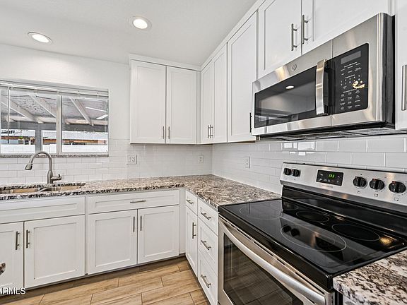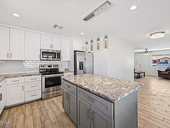 Welcome Home to this Mesa Gem. This fully updated single‑story ranch offers 3 bedrooms, 2 full bathrooms, and 1,178 sq ft of light-filled, thoughtfully appointed space—all on a 6,199 sq ft low-maintenance desert‑landscaped lot (no HOA!). Kitchen features granite counter tops, stainless steel appliances and large center island. Outside, enjoy a private retreat with desert-friendly front and back yards, extended concrete patios, and room for outdoor living or potential pool/landscaping enhancements. Located just minutes from local schools shopping, dining, and easy freeway access—this move-in ready home offers the perfect blend of classic comfort and modern style.