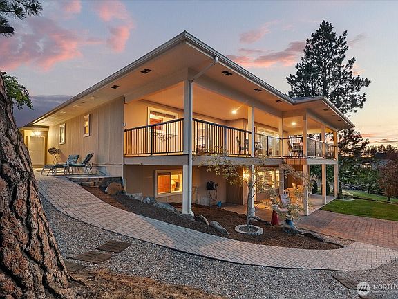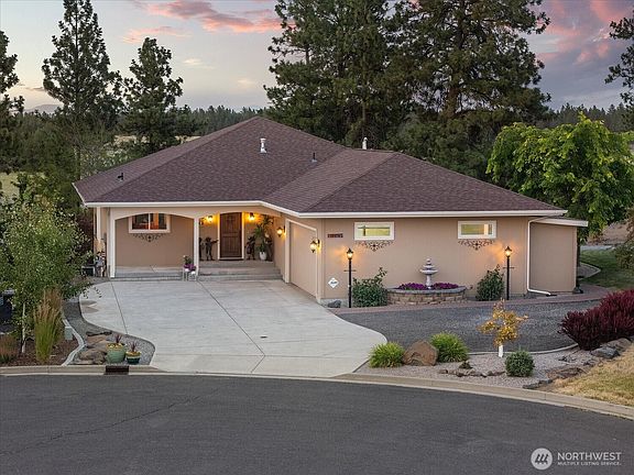 Overlooking open acreage and the Spokane Polo Club, this special property captures the views and feeling of being on your own secluded rural escape while being conveniently located on a private lot near all city amenities. Wonderfully landscaped and designed exterior living areas take advantage of the natural surroundings and views to Mount Spokane from your covered deck. Step inside and the open living areas are perfect for entertaining and still capture the views through walls of windows. The Primary Bedroom is ensuite with separate shower and garden tub, walk in closet, and quick access to the covered deck to enjoy sunrise. Two additional bedrooms and a bath in the daylight walkout basement. Ext hardscapes and maintained garden areas!