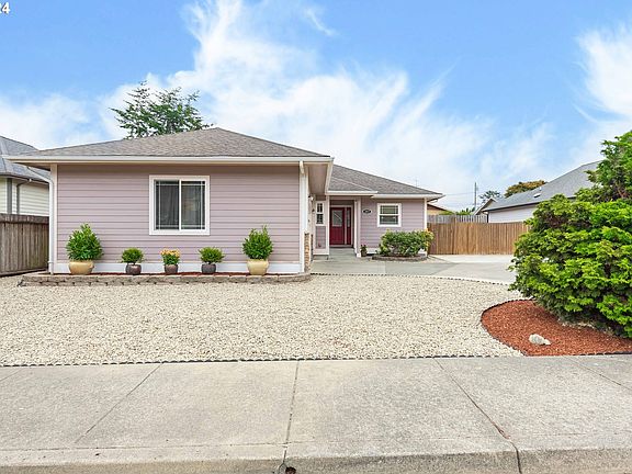 Assumable VA Loan is available for eligible Veterans at an incredible 1.75% interest rate! Discover this stunning custom home for sale on Seagate in Coos Bay. This single-level gem features 3 bedrooms and 2 bathrooms, highlighted by a spacious, open, vaulted great room that flows seamlessly into the kitchen. The kitchen and baths showcase luxurious Brazilian granite counters and custom rustic hickory cabinets, complemented by elegant porcelain tiles. The home features a vaulted master suite, efficient natural gas heating, and a brand-new gas furnace purchased in July 2024. The fenced backyard is perfect for entertaining. Additionally, the property includes a 2-car garage and a spacious concrete driveway that offers plenty of extra parking perfect for your RV/trailer/boat. Contact your local realtor for a showing today!