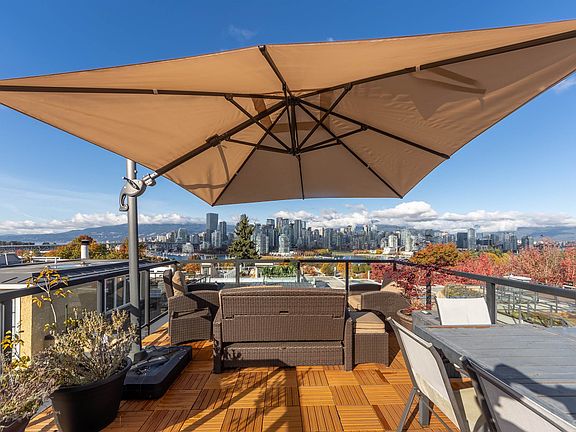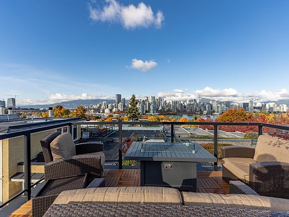 The Villas on 8th! An exclusive 4-unit townhome complex by renowned Trasolini-Chetner! This exceptional, detached townhome feels like a single family home in a private, gated community. Split-level floor plan with amazing 360 degree False Creek water, North shore mountain and city view, from your stunning personal 328 sq.ft. rooftop deck; perfect for all your outdoor entertaining! Designer kitchen w/quality appliances, incl gas range. True 3 bedroom, 2.5 bath, w/large family room below(could be 4th bedroom). Meticulously maintained. Walk to VGH, Granville Island & seawall, Skytrain, shopping, cafes & more. 2 secure parking stalls & ample storage. Pet & rental friendly. OPEN HOUSE: Saturday, Nov 1, 1-3pm