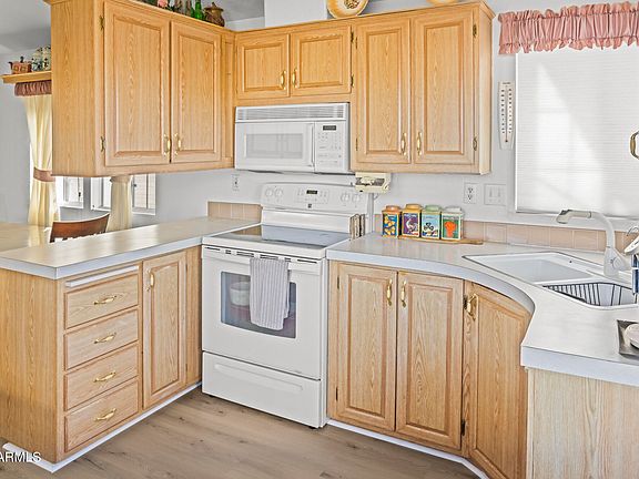 Enjoy the1 Bed 1.5 Bath 1997 unit with attached Arizona Room which can easily be converted to a 2 bed 2 bath unit (plumbing is already in) with still plenty of room to socialize with friends and family and enjoy the unobstructed Superstition Mountain views.