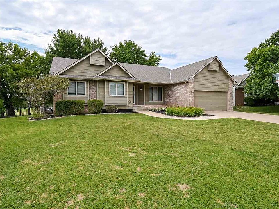 Welcome home! This five bedroom, three bath home boasts an exceptional floor plan with lots of square footage and located on a private, cul-de-sac lot that backs to the golf course. The home features fresh interior paint, vaulted ceilings, main floor laundry, beautiful woodwork, a formal dining area, spacious living room with a two way fireplace, an eating space, and an impressive kitchen. The kitchen offers granite countertops, stainless steel appliances, a large island, and great cabinet space. There is a large master suite with a walk-in closet, a remodeled master bathroom with two sinks, separate tub, shower, and great built-in's for added storage space. There are two other bedrooms and a second full bathroom that complete the main floor. The view out basement provides a large rec room, wet bar, office nook, 18x12 unfinished storage space, two large bedrooms, and a third full bathroom. You don't want to miss the backyard! Enjoy the outdoors with the sprawling, two-tiered covered deck that overlooks the 7th fairway of the Andover Municipal Golf Course. Incredible backyard that you must see to appreciate! New roof approximately 5 years ago, new water heater 5 years ago, new exterior hvac compressor 2018, stainless steel appliances, siding work just completed, fresh interior and garage paint, recent professional carpet cleaning, and the deck was recently stained. This well maintained home is ready for you!