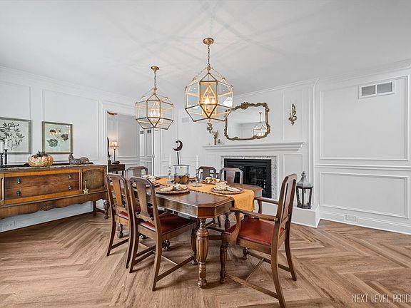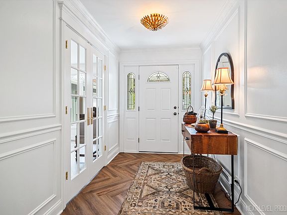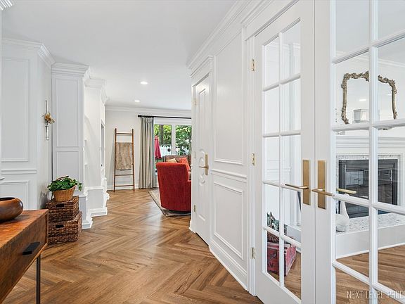 Pure Luxury Ranch Living! Every inch of this custom ranch exudes elegance and attention to detail, from the intricate moldings to the designer Emtek hardware, spectacular high-end light fixtures, stunning tile work, and solid-core custom doors. The gourmet kitchen is a showstopper with Sub-Zero refrigerator, Forno stainless steel oven with hood vent and pot filler, quartz countertops, and a Calcutta marble subway tile backsplash. The expansive island is both functional and breathtaking, offering a prep sink, dual-zone beverage refrigerator, seating, skylights, uplighting, and is crowned by dual chandeliers. The kitchen flows seamlessly into a three-season sunroom overlooking the professionally landscaped, tree-filled backyard. The dining room shines with a see-through fireplace framed by marble tile and wood paneling, while the living room impresses with its matching fireplace, crown molding, chandelier, and custom bar/coffee station. Your primary suite is a serene retreat with crown molding, walk-in closet, and a spa-inspired Carrera marble bath featuring a walk-in shower with rain head. Additional highlights include a powder room with grass cloth wallpaper and marble flooring, custom mudroom with lockers and bench, and two generously sized secondary bedrooms and stunning full hall bath. The finished basement is equally spectacular, boasting a wine wall with split-face quartz stone, lounge area, second family room with custom built-ins and fireplace, game room, and wet bar with quartz counters, subway tile, LED lighting, and sconces. An office, full bedroom, and bath provide versatility for guests or work-from-home. Luxury solid-core flooring in almost every room, Circa/Visual Comfort designer lighting... newer windows, driveway, and furnace...you will love this one of a kind home in a great location minutes to I-88, shopping, restaurants, parks, and just a few blocks from the Prairie Path Bike Trail!