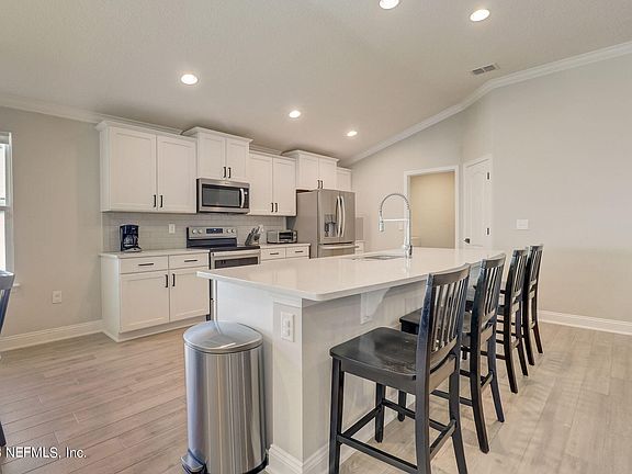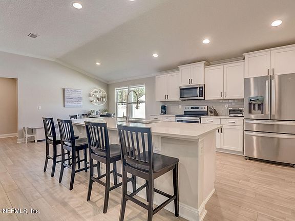 This DR Horton Destin home features everything you'd expect from a like-new stunner in Aberdeen! Arrive & park in your large 3-car garage. Enter the home and enjoy an open floorplan living room - dining room - kitchen area. It's ideal for entertaining, with tons of cabinet space in the kitchen, stainless appliances and a large quartz island. The bedrooms are carpeted, the main living areas and bathrooms are plank-tile. Out back is a large screened lanai with tile floor, leading out to a paver patio and a large preserve-view back yard. Enjoy!