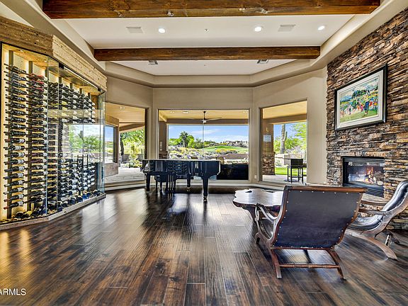 Discover the ultimate in Desert Luxury with this remarkable property nestled along the renowned 2nd Fairway of the Troon North, Pinnacle Course. This SINGLE-LEVEL living home features 4 first floor bedrooms, a private office, and a detached guest casita. The staircase leads you to a loft, where you'll find a balcony offering picturesque Golf Course Views. This home will suit any lifestyle, as it features a gourmet kitchen alongside a wet bar with seating, or venture outside to enjoy the negative edge pool, ample seating areas with a firepit, outdoor grill area, & more! Recent upgrades include a Custom Wine Cellar Wall, Garage Storage Cabinets, and a NEW Roof in 2023!! Embrace panoramic views and lavish amenities for an Unmatched Living Experience. It awaits your arrival!