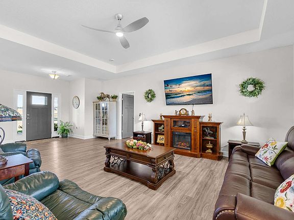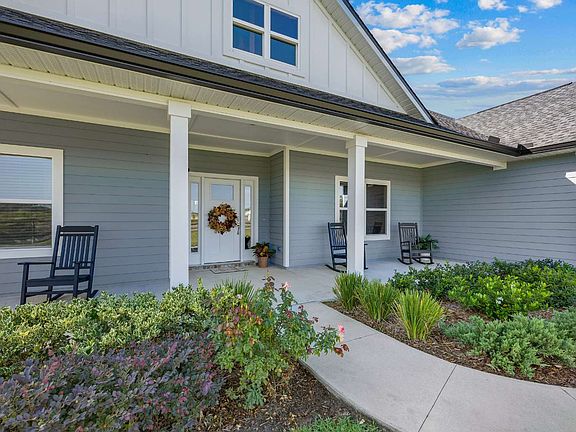 Welcome home to this charming Craftsman-style residence, built in 2024 and perfectly set on two peaceful, fully fenced acres in Eagle’s Point. With 2,035 heated square feet, this like-new home offers both comfort and thoughtful design throughout. Inside, the open layout features luxury vinyl plank flooring, a spacious living room with a tray ceiling and lots of natural light, plus a cozy front sitting area that’s perfect for relaxing or entertaining guests. The kitchen is the heart of the home, complete with beautiful cabinets, striking granite countertops, a pantry, and modern finishes that make everyday living a little easier. The front and back porches invite you to slow down and enjoy the quiet setting, while the beautifully landscaped yard provides plenty of space for outdoor living. A matching 12x32 shed and a 24x25 carport add extra convenience—ideal for storage and hobbies. Each bedroom is comfortably sized and includes its own walk-in closet, while the primary suite stands out with an impressively large closet and a relaxing bath with double vanities and a classic clawfoot tub. Originally purchased with one acre, the owners later added the adjoining acre, now on a separate parcel, giving you the flexibility to enjoy the full two acres or sell or build on the second lot. This home is move-in ready and full of warmth—offering the best of country living with the comfort and quality of something new.