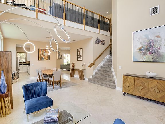 This lovely Cambridge model has an extended loft and a private rear yard bordering the lake. The downstairs offers formal areas, a large open kitchen with island & breakfast nook, family room, laundry room, full bath and a 5th bdrm/den with Saturnia marble flooring throughout. Upstairs you'll find a large open loft area, the primary suite and three other bedrooms which share a full bath. Wired for whole house generator. This manned gated community with only 250 homesites offers a fantastic resort style pool, club lounge, billiard room and fitness center. Only minutes to the turnpike, shopping and dining - yet it feels like the country as it's surrounded by upscale residential communities including Palm Meadows, Equus & the Equestrian Center with stable and paddock views.