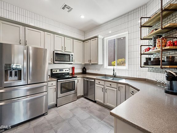 Fantastic turnkey fully furnished home in the community of Tesoro. The great thing about this home is that you can easily live on the first level of the home as it has two primary suites, one on the first level and one on the second level. This open-concept kitchen offers stainless steel appliances, sleek countertops, deep kitchen sink and ample cabinet space. There is an additional half bath downstairs and dining space with beautiful lighting fixtures adjacent to the living room which features a stone electric fireplace and flows right onto the patio space offering great mountain views. The primary suite on the first level has a walk-in shower while the one on the second level has a separate soaking tub and shower. Both have a large walk-in closet. The loft is a versatile space that that can be used as an additional living room or office space and opens to a private balcony with panoramic views of the mountains surrounding you. This outdoor space becomes an extension of your living area, perfect for enjoying your morning coffee or hosting intimate gatherings with friends. Residents of this home also enjoy access to community amenities including a community pool, hot tub, clubhouse and workout facility. Make this beautiful home in Gold Canyon yours today!