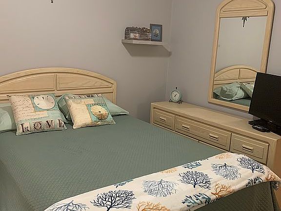 We are offering a modest 2 bed / 2 bath unit on the first floor of the Carolina Shores Resort in Calabash. The unit is approximately 900 Sq Ft and comes completely furnished with 2 queen beds, lazy boy sofa bed, recliner, bar counter stools, dining room set, washer, dryer, TV with stand. Stainless appliances.