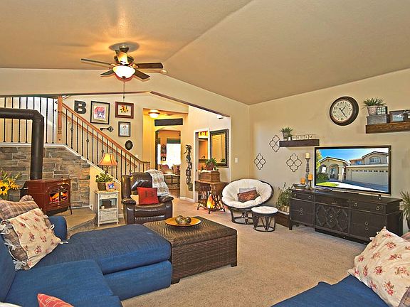 An amazing 4 bedroom home in the Villages at Damonte Ranch in South Reno. As you enter, from the covered porch, the living room greets you with a wood stove for cozy nights, high ceiling, and ceiling fan. A bright and open kitchen with granite counter tops, extended cabinetry, and built-in pantry. Including stainless steel appliances and a smart dishwasher all while overlooking the family room for that great room function.