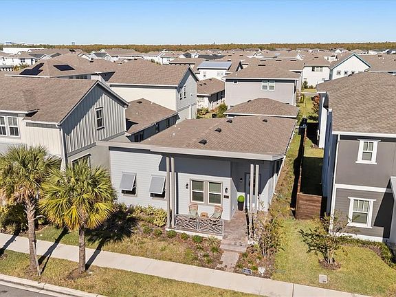 HOME SWEET HOME! Come set your eyes on this beautifully updated Tanner model by Craft Homes in Laureate Park. This Stunner has it ALL and MORE! Your eyes will be drawn into this home's Modern Elegance, Top-of-the-Line Upgrades, combined with an Open Floor Plan. High-End Laminate Flooring is throughout the home with Ceramic Tile in the Bathrooms. If you love to cook or entertain, you'll appreciate this Stunning Gourmet Kitchen that features Quartz Countertops, Stainless Steel Appliances, Farm-House Sink, a Spacious Island with Upgraded Lighting and a Built-In Bar and Wine Fridge. The Living Room is rather large with an Electric Fireplace and Stylish Mantel. The home features a Split-Bedroom Floorplan with the Primary Bedroom located at the back of the home with an Extra-Large En-Suite that features Double Walk-In Closets, Double Sinks, and the LARGEST Shower you've EVER SEEN! On the other side of the home, you'll find two more Bedrooms and an appointed Bathroom. Additional features include a premium lot, 12-foot ceilings, Energy Star certification, there is also pre-wiring for surround sound and ample storage throughout. The Back-Yard features a Large Lanai with Pavers which is great for relaxing and/or entertaining as well as your 2-Car Garage. Come enjoy everything that Laureate Park and Lake Nona Medical City has for you including 44 miles of walking, jogging, and bike trails along with Top-Notch Amenities including an Aquatic Center as the Community Pool, plus a Playground and Fitness Center with lots of restaurants nearby. Don't miss your chance to make this house your home!