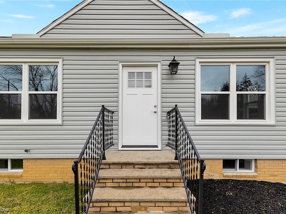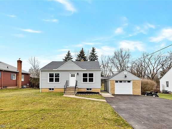 This turn-key 2 Bed/2 Bath Ranch in North Royalton exudes modern comfort. The updated kitchen boasts granite counters, luxurious vinyl floors, and brand-new high-end stainless-steel appliances, including an LG gas stove & ThinQ French Door refrigerator. Hardwood floors grace the bedrooms and living room, enhancing the home's timeless charm. The main floor features a tastefully remodeled bathroom with a walk-in shower and vanity for added convenience. The finished basement expands the living space, offering a family room with upscale vinyl floors, a versatile spare room, and an oversized custom bathroom with a granite vanity and tile floors. The lower level also includes a large unfinished section, ideal for a laundry area, ample storage, or a workshop for the handy person. Step into the outdoors to enjoy the expansive backyard, surrounded by majestic tall pine trees that provide a sense of privacy, creating an ideal setting for entertaining. A one-car garage, complemented by a covered breezeway, adds a touch of convenience to the home's layout. The freshly paved driveway, along with updates such as Vinyl Siding, Plumbing, Electrical box, fresh paint, and newer windows, enhances the property's overall appeal. New Roof, Dec 2023! Don't miss the chance to make this your home sweet home—schedule your private showing now!