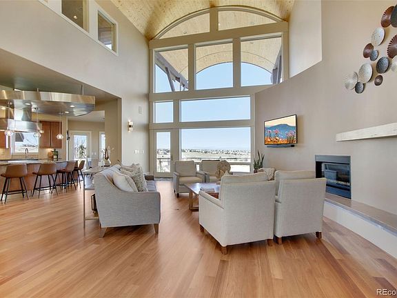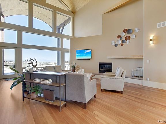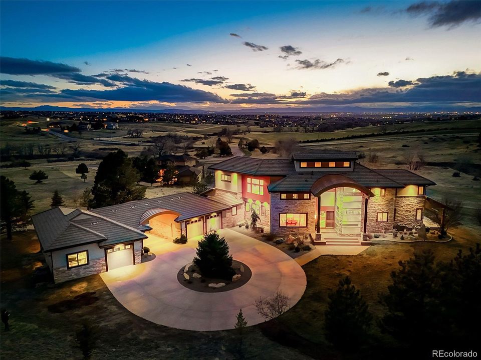 Perched above the valley to the west & set on over 3 acres, this executive home is unlike any other on the market. The unobstructed PANORAMIC MOUNTAIN VIEWS from almost every room will take your breath away. This home is a true work of art...your eyes will quickly be drawn to the dramatic arch w/a metal standing seam roof. Upon entering you see the soaring arch running from the entry through the great room and framing the impressive mountain view & refinished Rosewood floors. Just off the great room, you will find a well-appointed gourmet kitchen w/4 seat island & sunny breakfast nook. The unbeatable primary suite features its own sitting room w/ fireplace, coffee/wine bar & walkout deck. Relaxing primary bathroom w/ a ceiling mount faucet soaking tub, steam shower, large walk-in closet & second laundry area. Heading down the floating staircase to the lower level you will find an oversized family/entertainment room w/ 10ft+ ceilings & floor-to-ceiling sliders leading out to the hot tub & lower patio areas. Over 3,500sq ft of thoughtfully designed exterior living space allows exceptional outdoor entertaining while overlooking the open and rolling hills. The secondary heated garage offers room to keep toys for any hobby including RV/boat/camper parking bay & full workshop space. Rancho Montecito is a development of 11 custom homes set on 80 acres, including 40 acres of open space with trails. Just 10 minutes away from downtown Parker, yet feels worlds away.