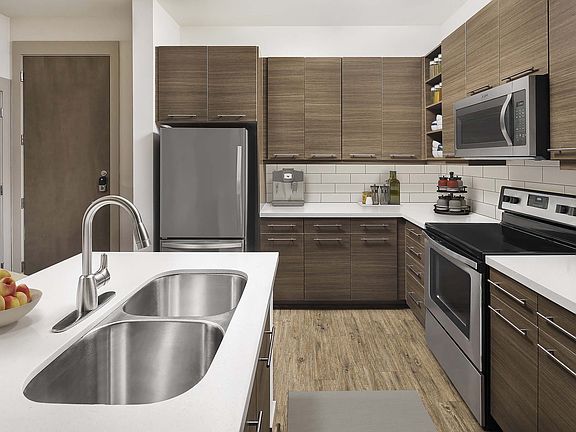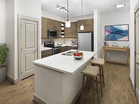 - Exterior features: , 11-foot ceilings, 42-inch upper cabinets, Balcony, Barbecue, Bathtub and shower combo, Bike storage/racks, Brushed nickel accents, Business Center, Cable included in rent, Ceramic tile kitchen backsplash, Close to entertainment, Close to highways, Close to parks & recreation, Close to shopping, Computer niche, Conference rooms, Courtyard, Flex Space, Frameless bathroom mirrors, Game Room, Hardwood-style floors in kitchen, living, and bath, Hardwood-style floors throughout, Housekeeping, Internet included in rent, Kitchen island, Lawn, Meeting rooms, Modern woodgrain cabinets, Open shelving in kitchen, Parking, Pendant lighting in kitchen, Pet grooming station, Prestigious school district, Pull down spray faucet, Quartz countertops, Recessed lighting in dining, Soaking tub, Stainless steel appliances, Stand alone shower, TV Lounge, Top floor, Under cabinet lighting, Undermount sinks, Utility room, Wi-Fi in common areas, Yoga/spin studio