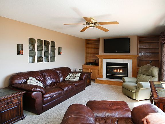 CHECK OUT this Meticulously Maintained 2 Story home with 2 Car Garage and 3rd car parking pad. Over 2100 SQ FT of finish in this immaculate home. On the main level you will find gorgeous laminate floors, a spacious kitchen with updated appliances, and a breakfast bar. The first floor also features a generous family room with custom built-in bookshelves and tile surround gas fireplace as well as a bonus living room or office space. Sliding glass doors leads you to an oversized deck with a pergola and built-in bench seating. The backyard is completely private with a view of the Spring Creek Sports Complex. Don’t miss the Storage Shed on cement pad, it stays! Upstairs has an AMAZING Master Suite that features a HUGE walk-in closest and an updated Master Bath with a tile surround, glass shower. There are also 2 Large Bedrooms and a 2nd Bath with an oversized Soaker Bathtub. The Professionally Finished Lower Level has a 4th non conforming Bedroom, 3/4 Bath, Wet bar, built-in desk, and egress window. This home is located just steps away from a walking path, bike trails, and park. Welcome Home!!