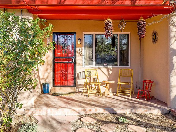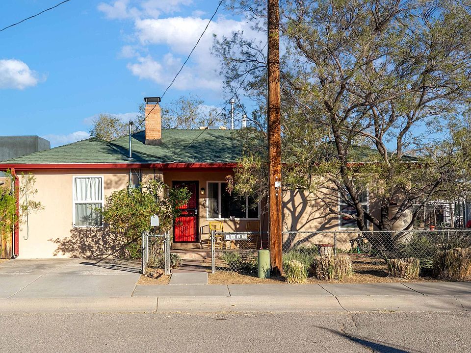 Beautiful home just blocks away from the thriving Sawmill Market, Old Town, and Bosque Trail. Fantastic oak floors throughout most of the home. Cove ceilings frame the living room with a wood burning fireplace for those cold winter nights. Dining room has original built ins and lots of natural light. The kitchen has lots of cabinets, cork floor, and gas range. Newer synthetic stucco done in 2022, tankless water heater, 2022, gutters and water collection 2021 and more! Enjoy the outdoors under your covered patio or the front porch. Fully landscaped with natural landscape and many fruits trees.Quiet, friendly cul de sac community, hidden gem near the best of Old Town, museums, parks, river trails, with rapid access to downtown and all of Albuquerque--east and west, and balloons!